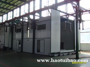 大连欣恒工程设备采用轻质量的钢梁,内外壁板夹绝热材料组装制成壁板的方法。还有烘干房受热膨胀,考虑了有吸收收缩的结构。为防止油烟和热气外溢,壁板间和风管连接头间隙的密封采用特殊结构。